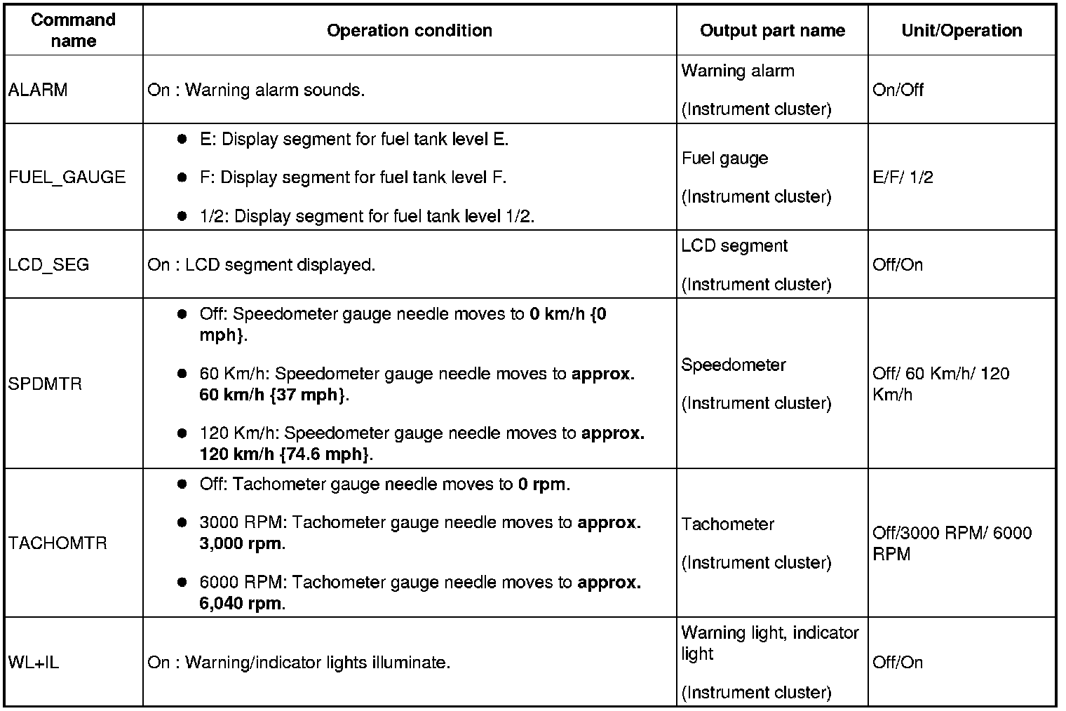 ACTIVE COMMAND MODES TABLE [INSTRUMENT CLUSTER]