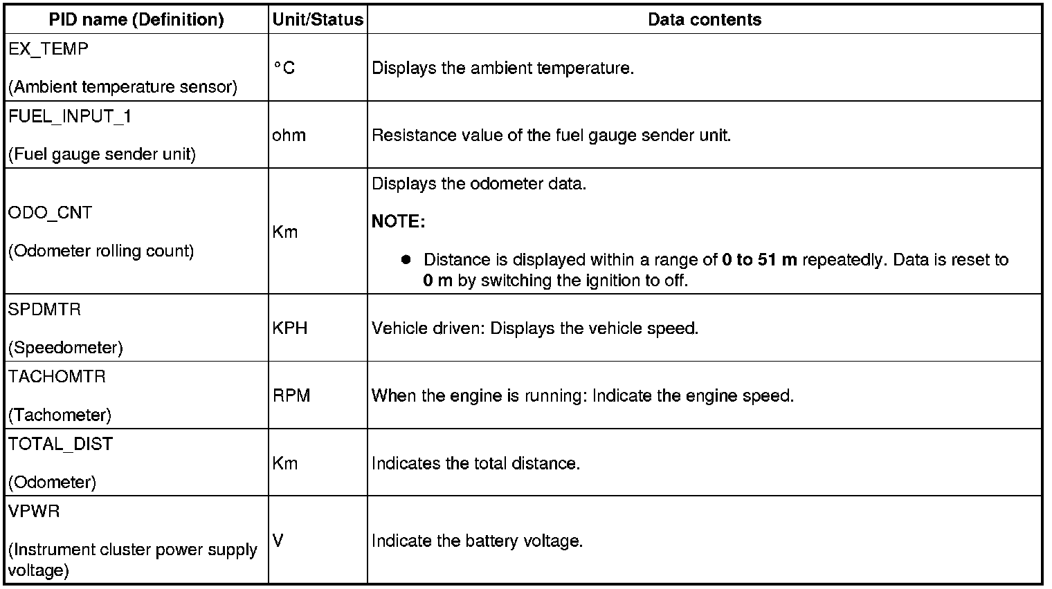 PID/DATA MONITOR TABLE [INSTRUMENT CLUSTER]