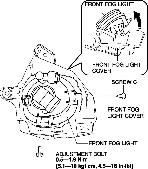 9. Pull the front fog light in the direction of the arrow shown in the figure and remove it from the front fog light cover.