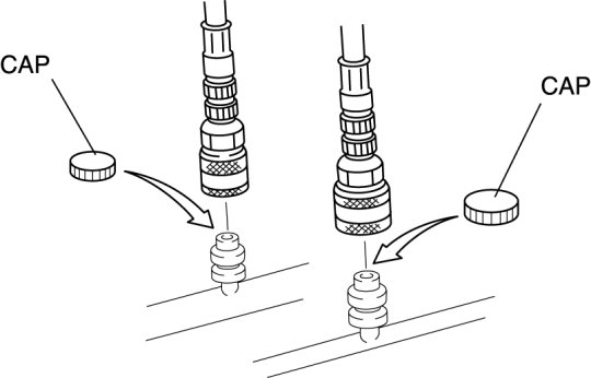 - Always being charging of refrigerant from the high-pressure side. If changing is begun from the low-pressure side, the vanes of the A/C compressor will not be released and abnormal noise may result.