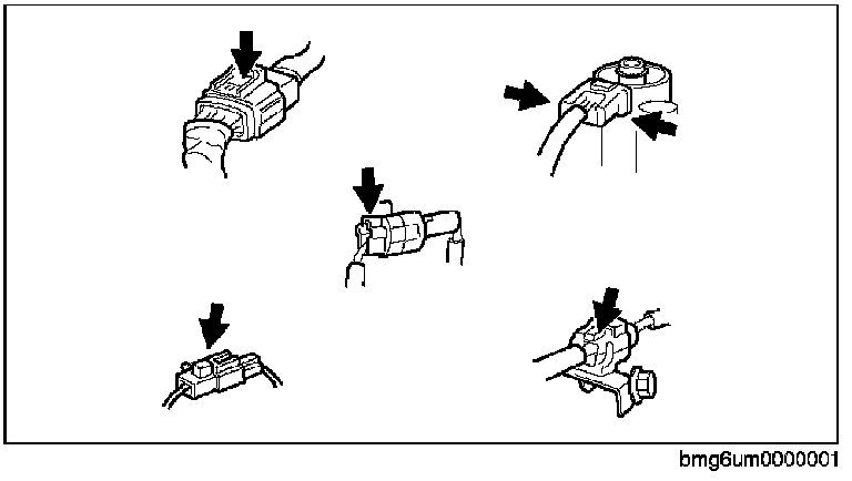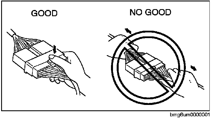 - When disconnecting connector, grasp the connectors, not the wires.