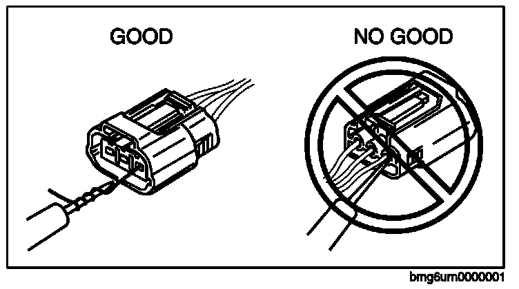 Caution: To prevent damage to the terminal, wrap a thin wire around the tester probe before inserting into terminal.
