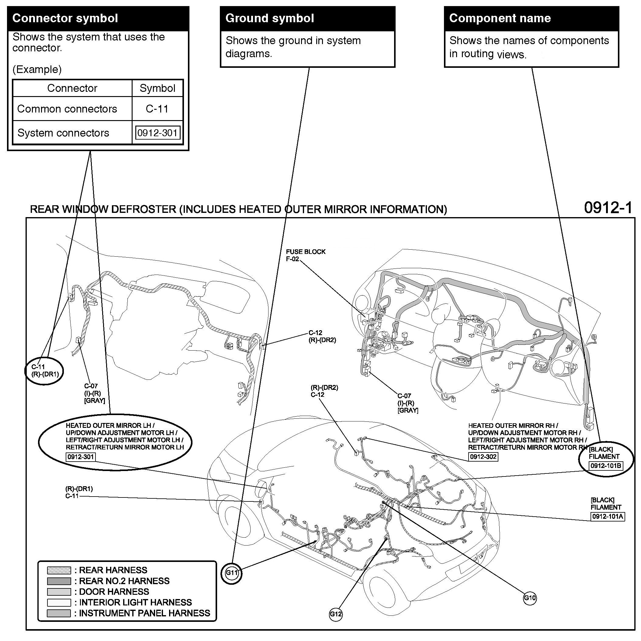 The routing view shows where electrical components are on the system circuit diagram by call out line and connector symbols.