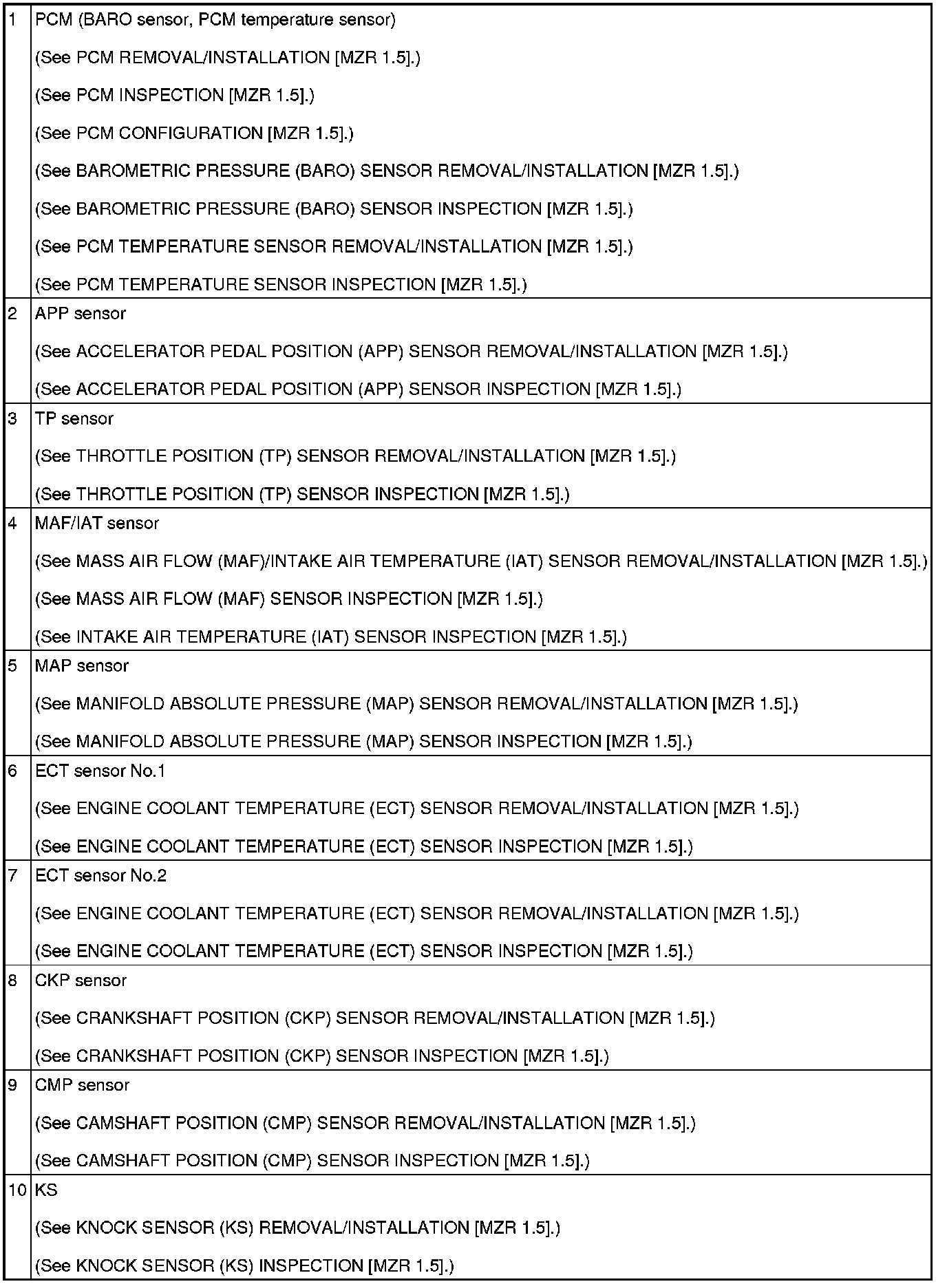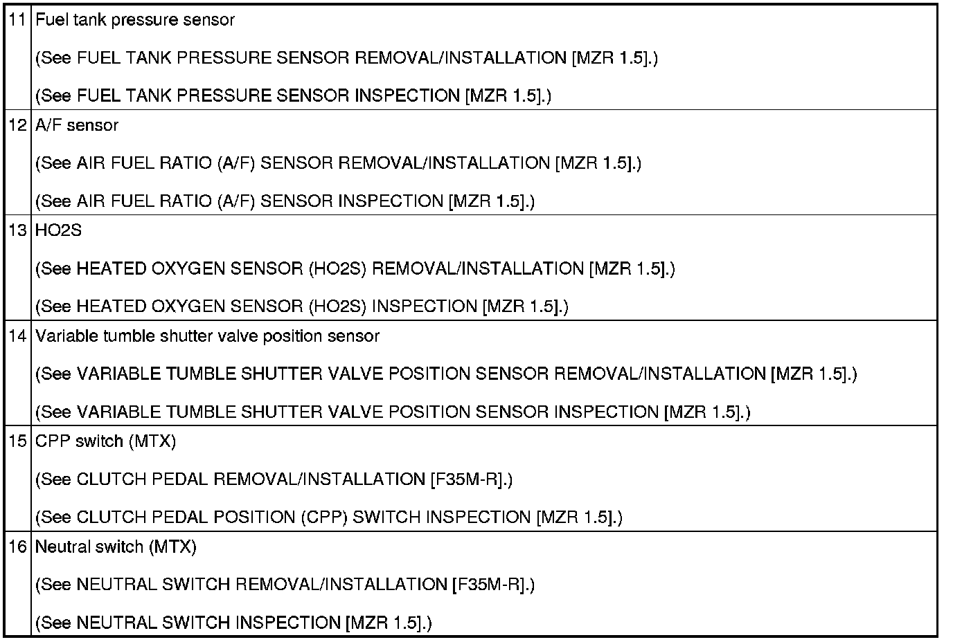 CONTROL SYSTEM LOCATION INDEX [MZR 1.5]