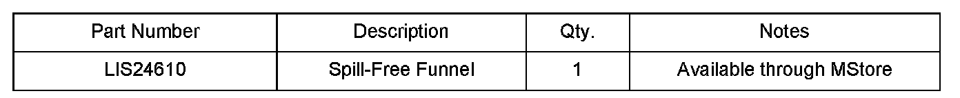 7. Bleed cooling system using SST Lisle Spill-Free Funnel L1524610.