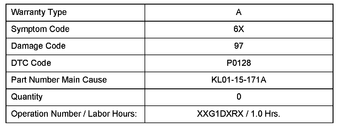 Some vehicles may experience MIL illumination with DTC P0128 thermostat stuck open) stored in memory during engine warm-up at idle. This may be caused by the thermostat jiggle-pin (A) contacting the thermostat cover.
