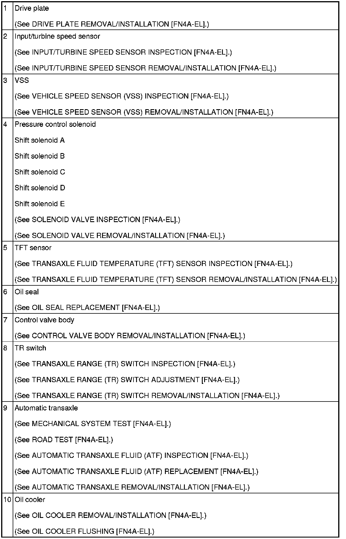 AUTOMATIC TRANSAXLE LOCATION INDEX [FN4A-EL]
