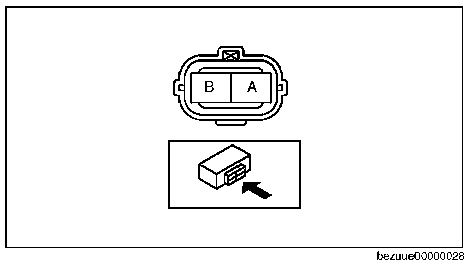 1. Measure the coil resistance between terminals A and B using the tester.