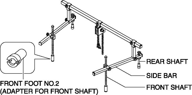 c. Install the front foot No.2 to both front shafts of the SST (49 C017 5A0).