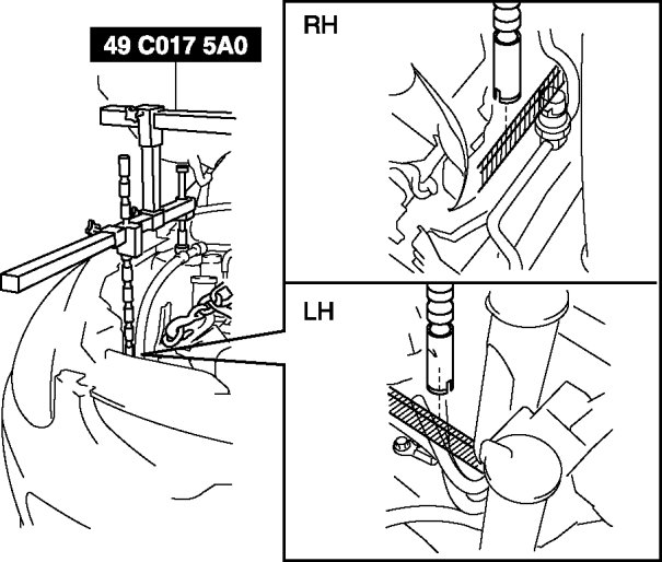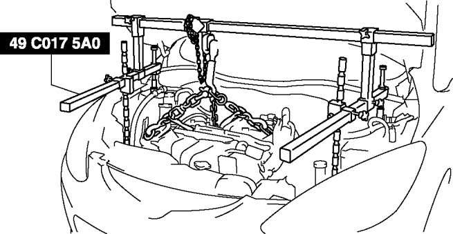 1. Adjust the SST (49 C017 5A0) and lean the engine toward the transaxle.