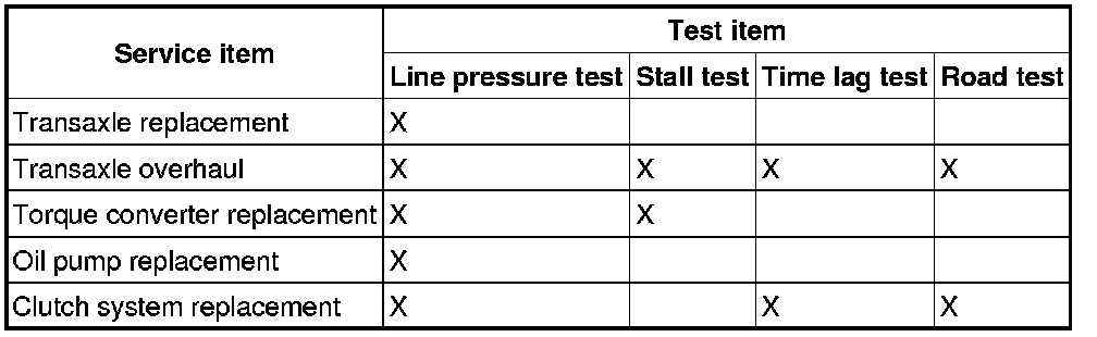 9. Perform the following test according to the service item. Mechanical System Test Road Test