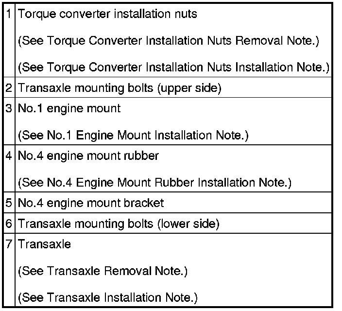 - To prevent the torque converter and transaxle from separating, remove the transaxle without tilting it toward the torque converter.
