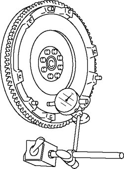 - Inspect the runout of the surface that contacts the clutch disc with the flywheel installed to the crankshaft.