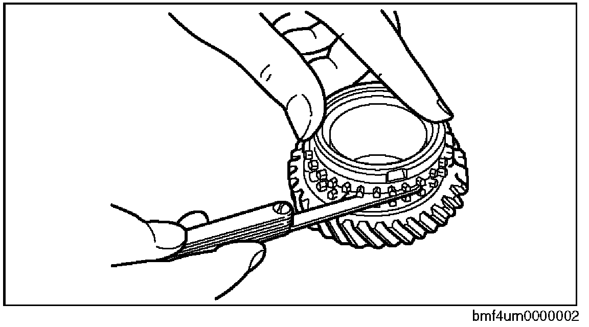 - If it is less than the minimum specification, replace the synchronizer ring.
