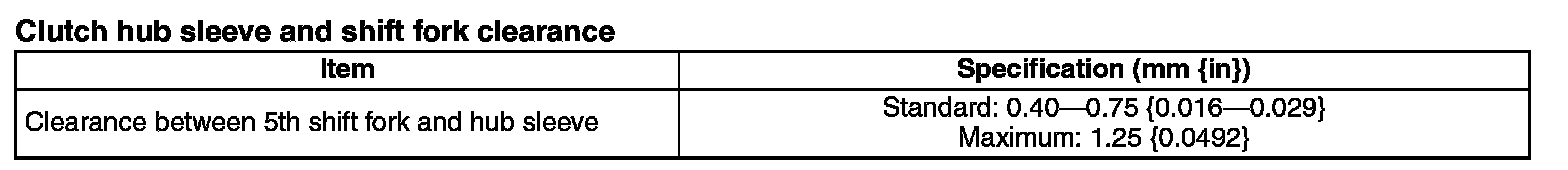 - If it exceeds the maximum specification, replace the hub sleeve and shift fork as a set.