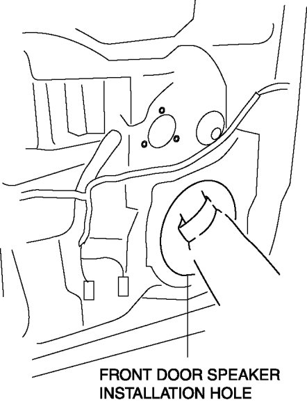 - If the bolts are removed without supporting the front door glass, the front door glass may fall off and be damaged. Remove the bolts while inserting your hand into the front door speaker installation hole to support the front door glass.