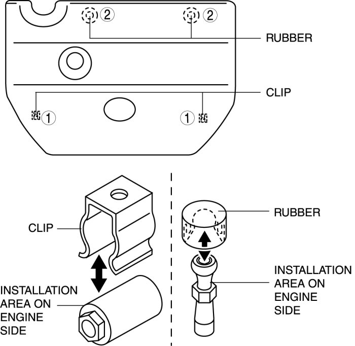 - Lift off and remove the plug hole plate from the installation areas as shown in the figure.