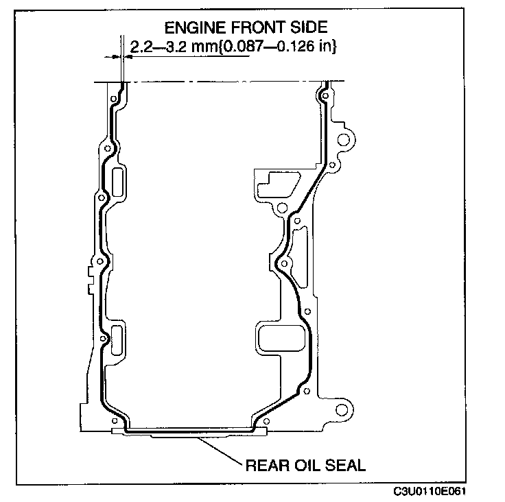 Oil pan Assembly Note1. Apply a continuous bead of silicone sealant to the oil pan as indicated in the figure.