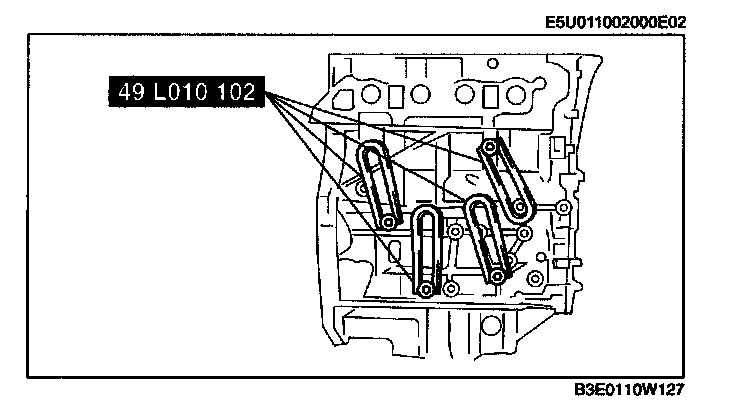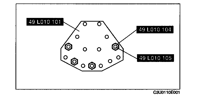 1. Install the SSTs (arms) to the cylinder block holes as shown, and hand-tighten the bolts (part No.: 9YA20-1003) or M10 x 1.5T length 90 mm (3.55 in).