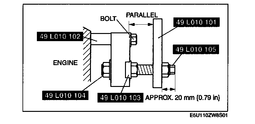 3. Adjust the SSTs (bolts) so that less than 20 mm (0.79 in) of thread is exposed.