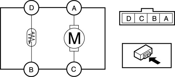 2. Connect battery positive voltage to passenger compartment temperature sensor terminal A and connect terminal C to ground to verify fan operation.