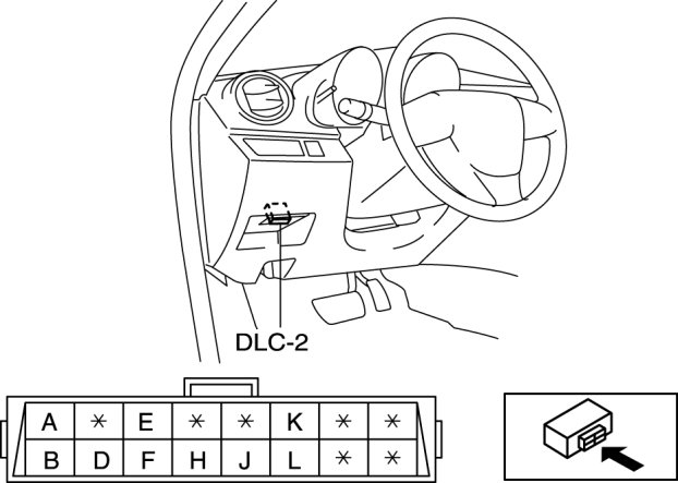 - Connect terminal B (INIT) of the DLC-2 to terminal J (GND) using a jumper wire.