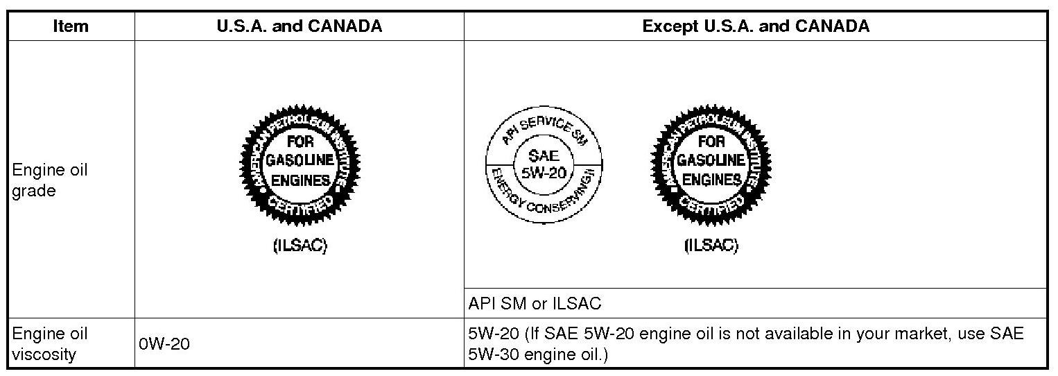 6. Refill with the following type and amount of the engine oil. Engine oil specification