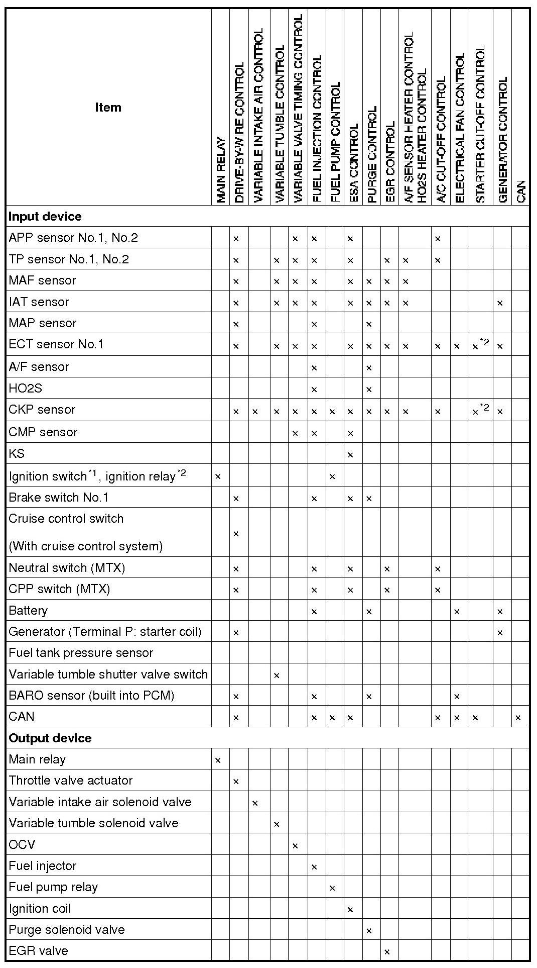 Control System Device And Control Relationship Chart