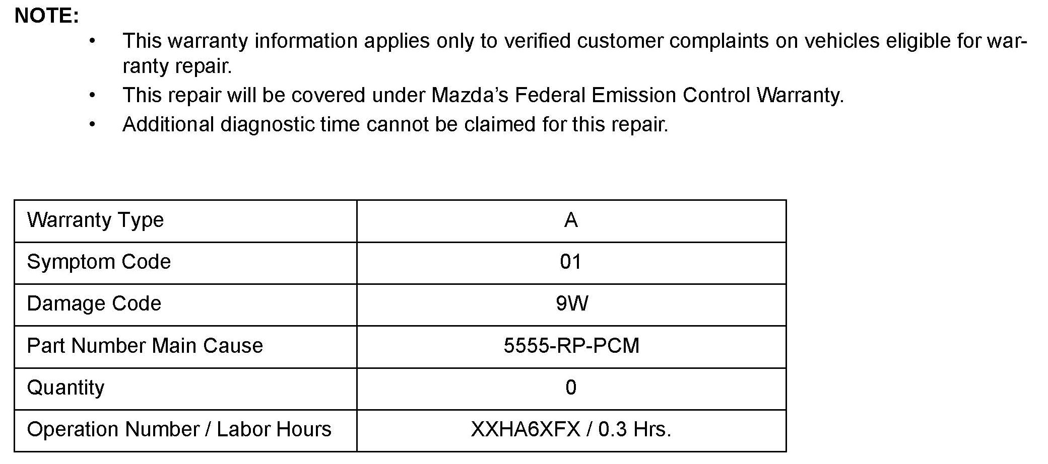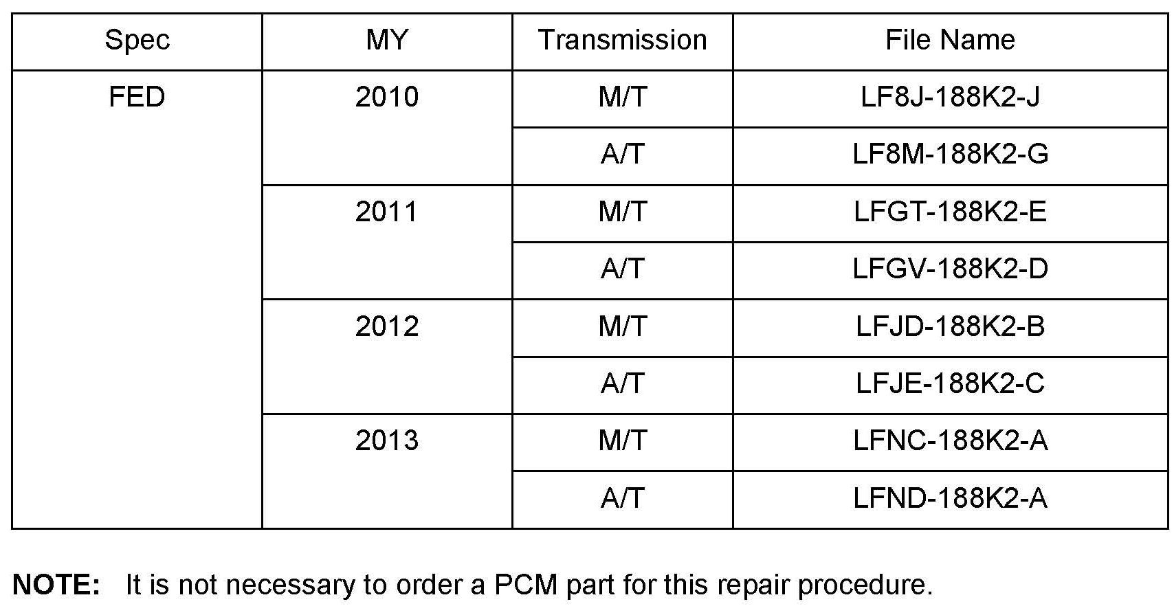 2010-2013 Mazda3 (2.0L LF FED emission) vehicles with VINS lower than JM1BL******768364 (produced before December 17, 2012)