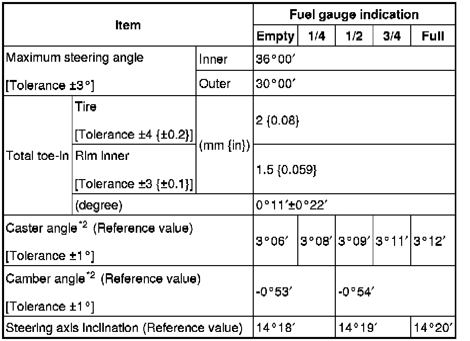 Front wheel alignment (Unloaded)*1 [L3 WITH TC]