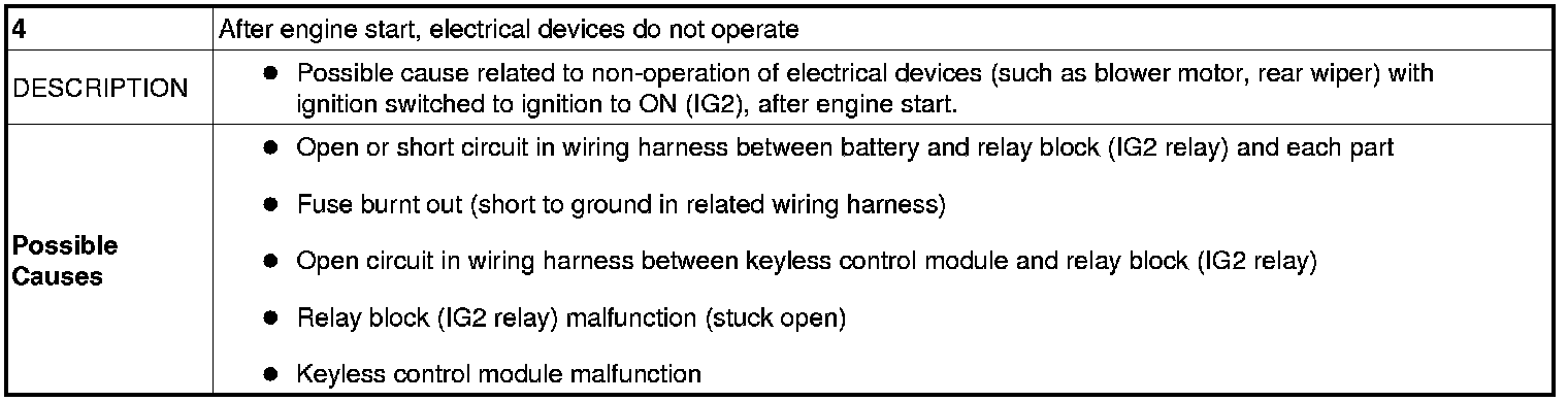 No. 4 After Engine Start, Electrical Devices Do Not Operate