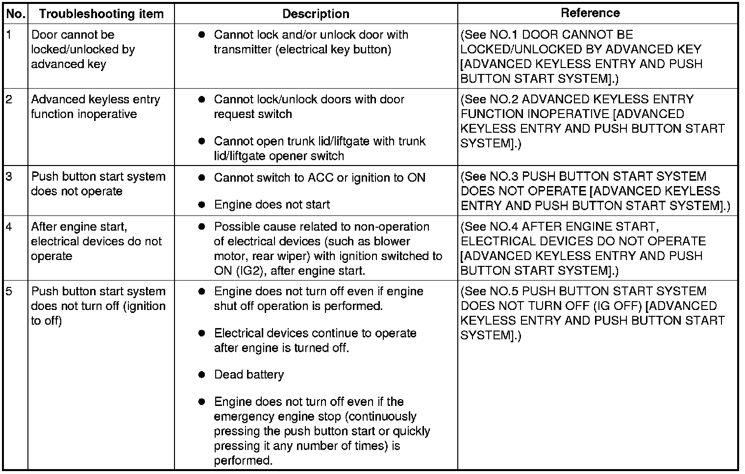 SYMPTOM TROUBLESHOOTING CHART [ADVANCED KEYLESS ENTRY AND PUSH BUTTON START SYSTEM]