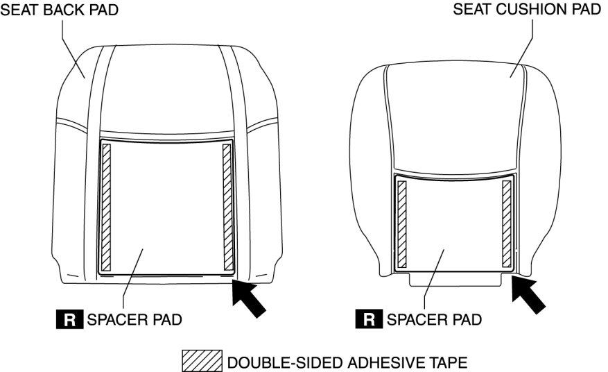 - If there are any peel-off marks from the seat back pad and seat cushion pad remaining after they have been peeled off, the seat pad cannot be reused and it must be newly replaced.