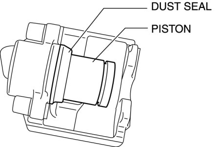 - When blowing compressed air into the caliper body, the piston may pop out and cause injury if not supported at the correct point. Securely support the piston friction surface by hand when blowing compressed air.