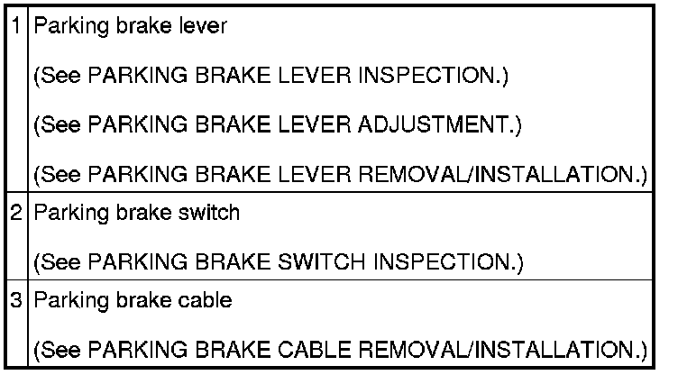 PARKING BRAKE SYSTEM LOCATION INDEX