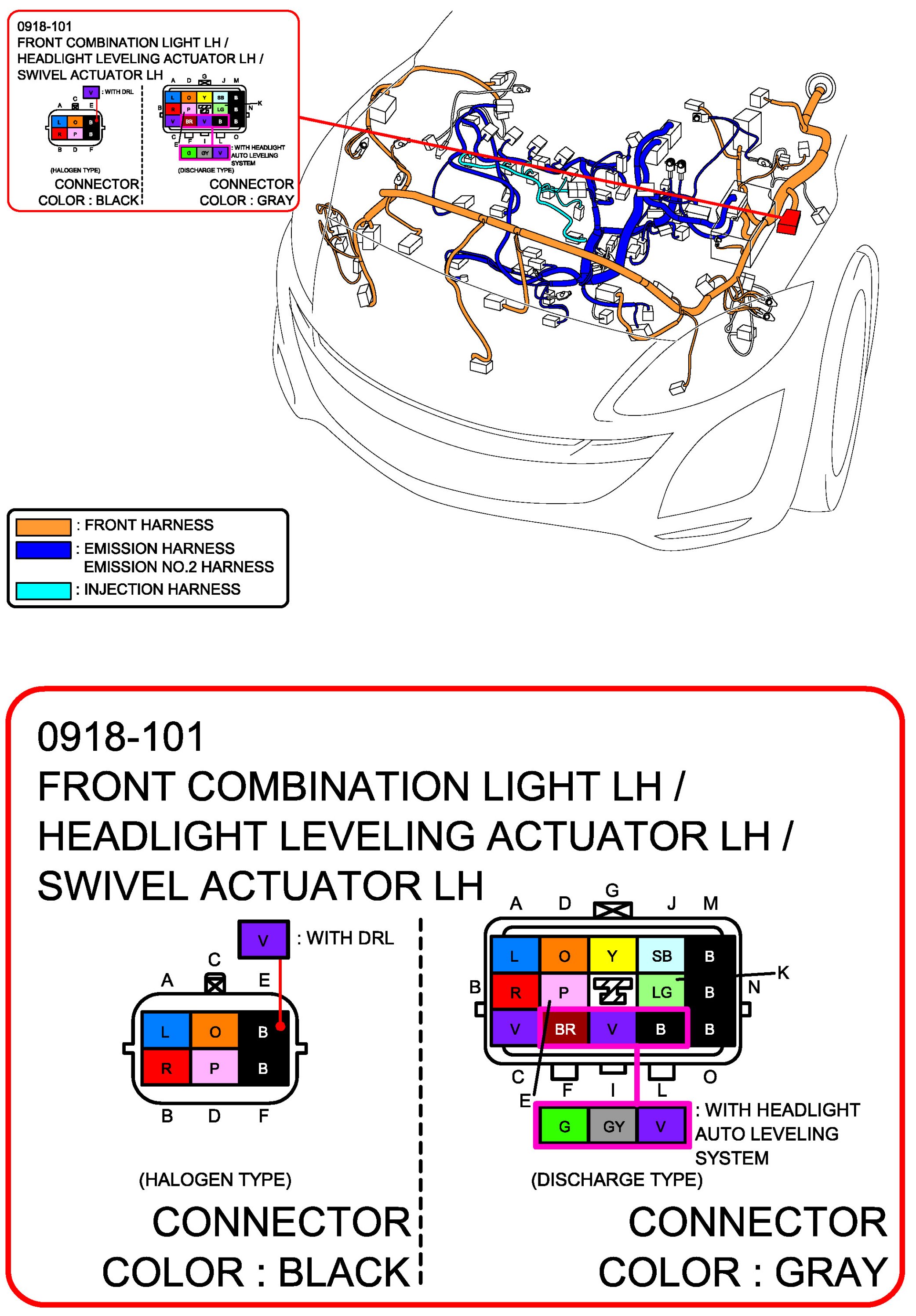 Front Combination Light LH/Headlight Leveling Actuator LH/Swivel Actuator LH