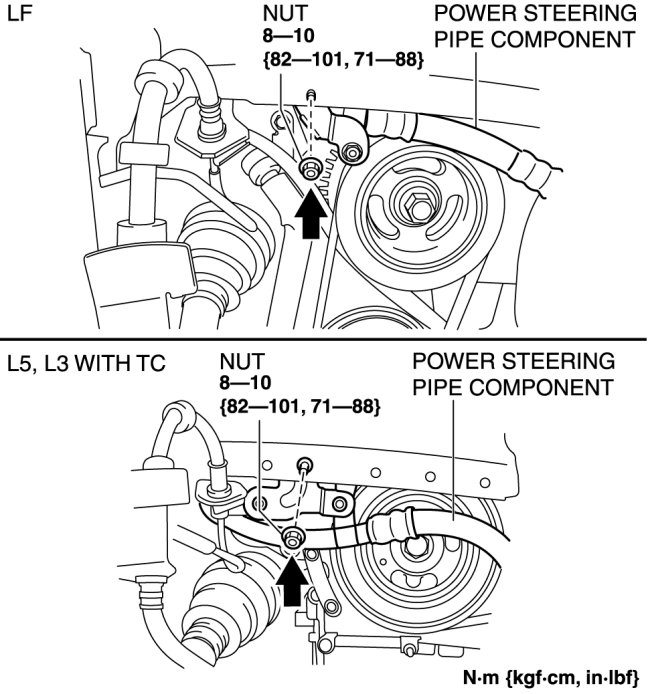 POWER STEERING FLUID LINE COMPONENT REMOVAL/INSTALLATION