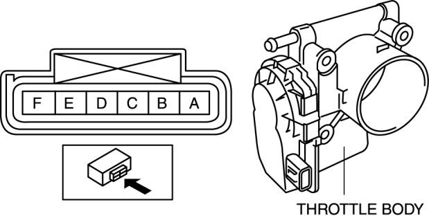 4. Measure the resistance between throttle body terminals E and F.