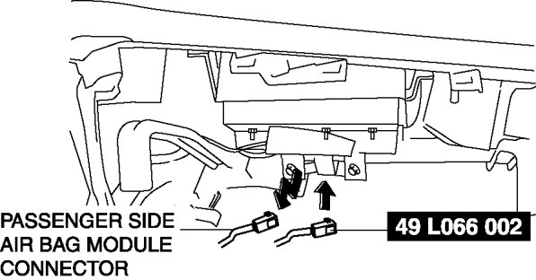 3. Connect the SST (Adapter harness) to the passenger-side air bag module as shown in the figure.