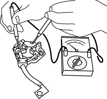 2. Verify that there is no continuity between the commutator and the shaft using a tester.