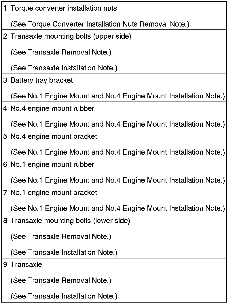 Transaxle Removal Note
