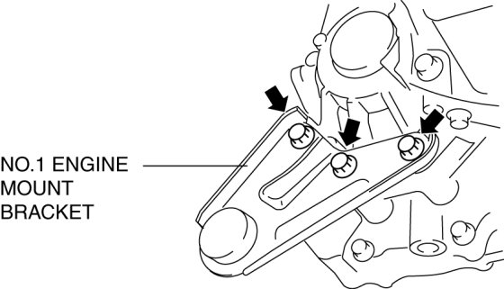 2. Install the No.1 engine mount bracket to the converter housing, and then tighten the bolts.
