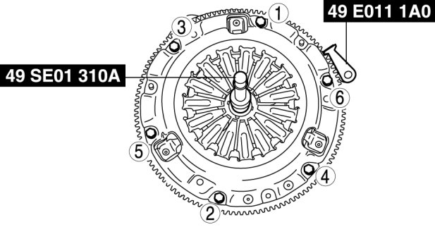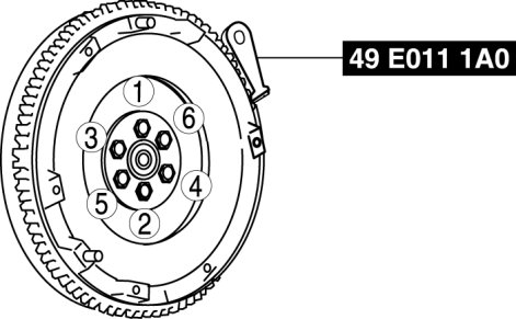 5. Gradually tighten the flywheel lock bolts in a crisscross pattern.