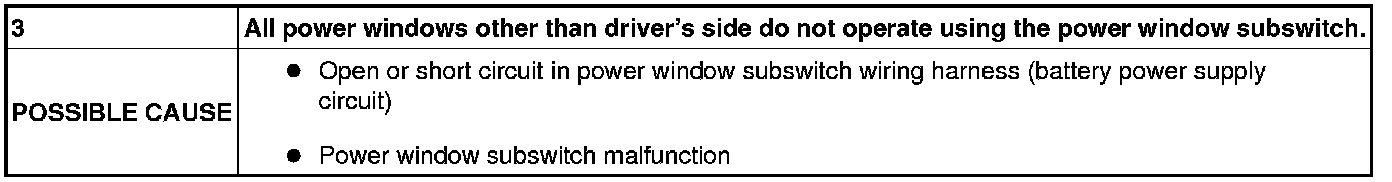No. 3 All Power Windows Other Than Driver's Side Do Not Operate Using The Power Window Subswitch