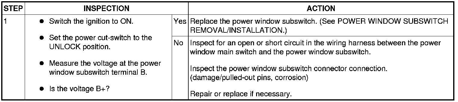No.3 ALL POWER WINDOWS OTHER THAN DRIVER'S SIDE DO NOT OPERATE USING THE POWER WINDOW SUBSWITCH [POWER WINDOW SYSTEM]