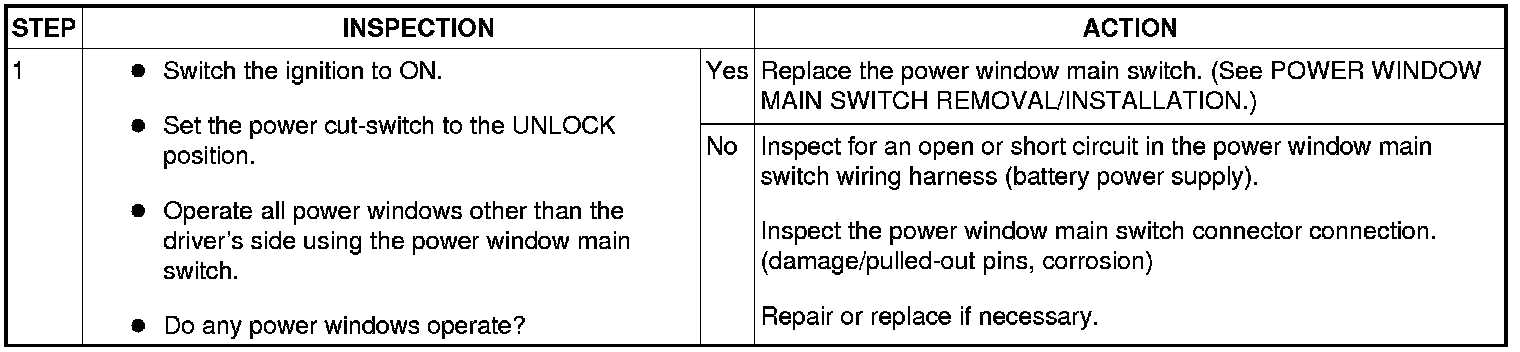 No. 4 All Power Windows Other Than Driver's Side Do Not Operate Using The Power Window Main Switch