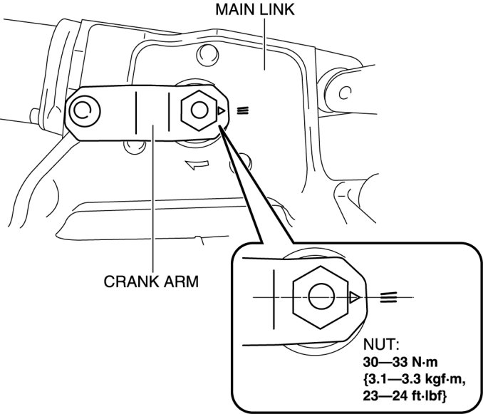 4. Assemble the crank arm such that the crank arm and main link markings are aligned as shown in the figure.