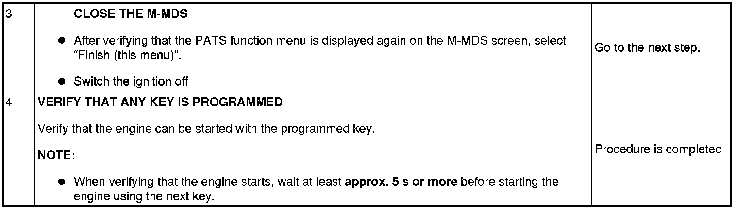 - If the engine is started during immobilizer system-related parts programming, the programming mode cancels. Therefore, do not start the engine unless indicated in the procedure. Repeat the procedure from the beginning if the engine is started during the immobilizer system-related parts programming.