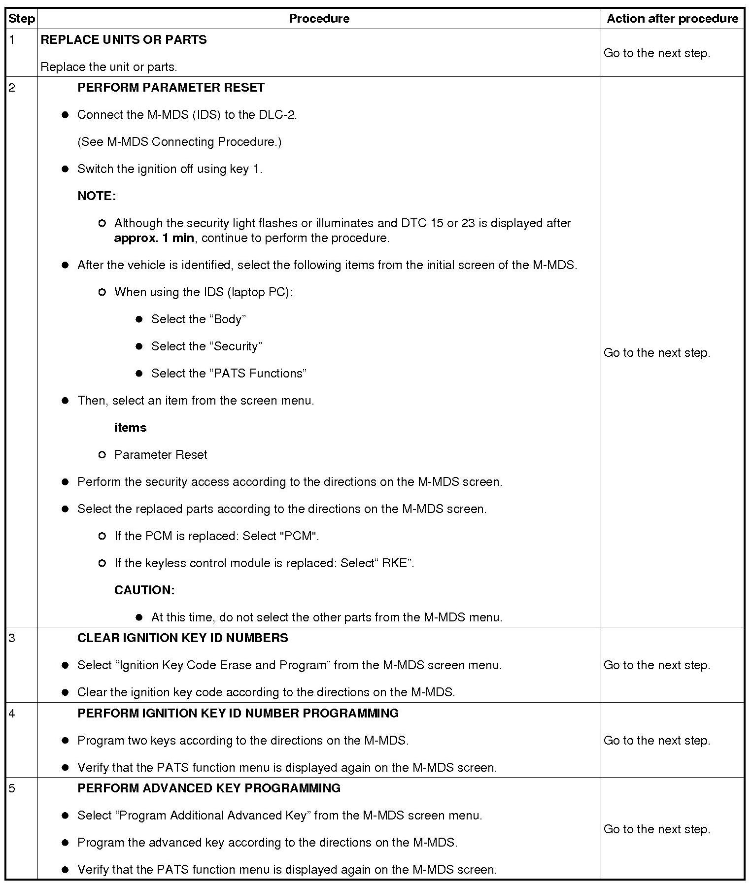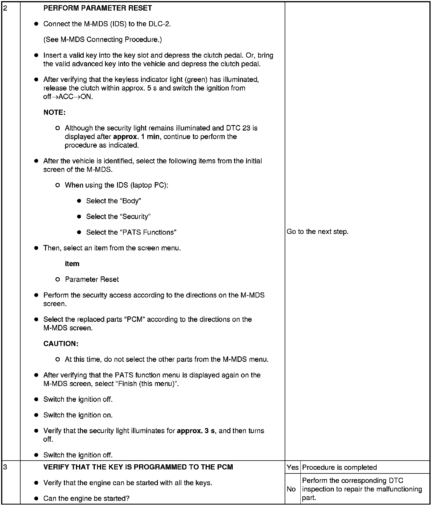 No.5 Programming Procedure Due to Simultaneous Replacement of Immobilizer System-related Parts (PCM, Keyless Control Module, and Steering Lock Unit)