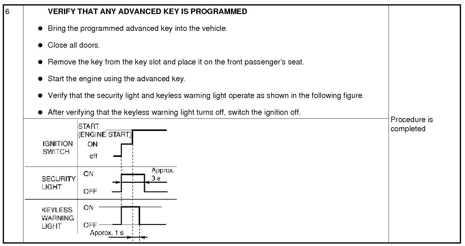 No.4 Programming Procedure Due to Keyless Control Module Replacement